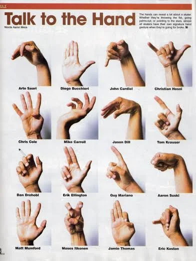 It's interesting how you only need to see the silhouette of your favorite skater to know that it's them. Every person has their own unique look when they're on a skateboard, and hands are a major part of that. We've always loved this old post by Aaron Meza from Skateboarder (see below), so we decided to make an updated list of some of our favorite hands in skateboarding from 2015.