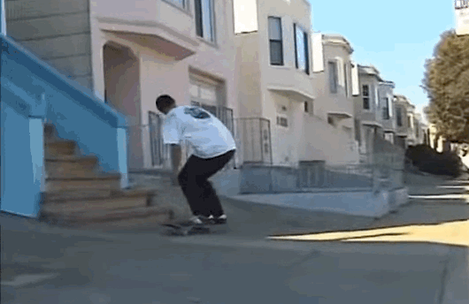 The years between 2005-2008 were prolific ones for the Canadian shredder, in which he produced parts for City Skateboards (Crime in the City), Vancouver's infamous Red Dragons skate crew (Skateboard Party), and Kurtis Filippone's Strange Brew, all of which are bangers. It was during this time that the consistency of his style really started to stand out. As skaters began to diversify their trick selections and terrain choices, Russ stuck with the standard late 90's / early 2000's fare of knee-high ledges, flat gaps and manual pads and pushed the progression of that style of skating even after the peak of its popularity. Russ never had a weird handrail or bowl skating phase, never made any radical fashion adjustments, he just kept skating well. Anyone needing proof need only see the gif above.