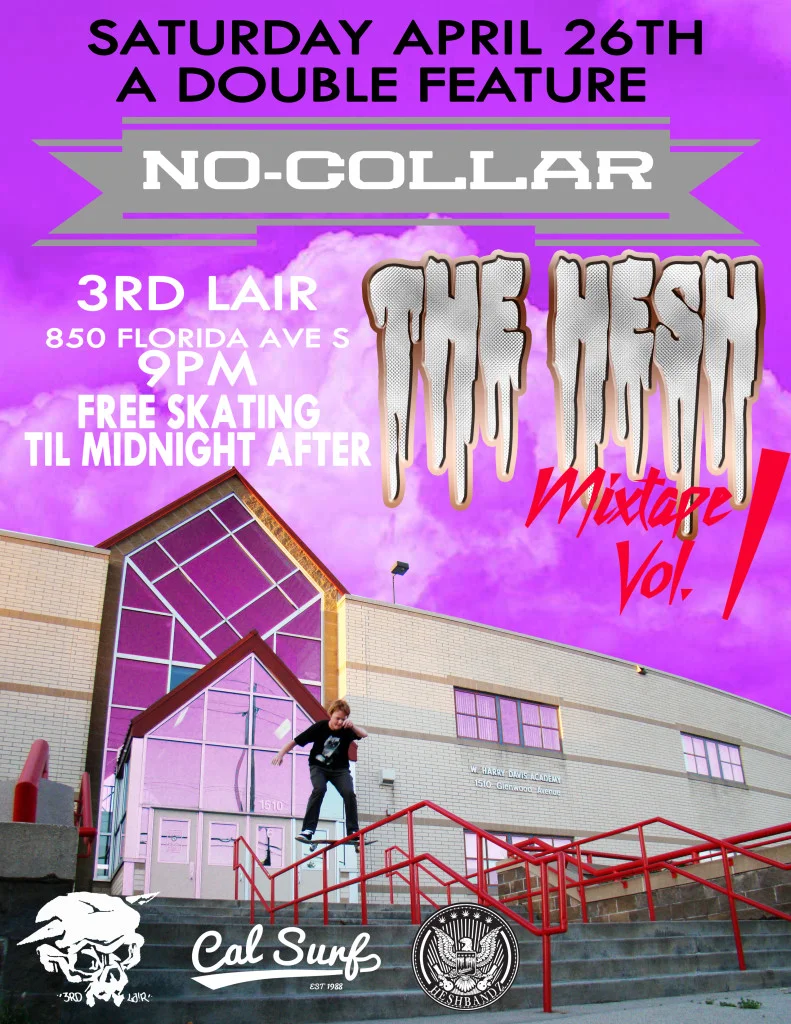 Also, Minneapolis readers should definitely head to 3rd Lair this Saturday for the double-header premier of Mitch Guth's No Collar and The Hesh's Mixtape Vol. 1. Both should be sick.