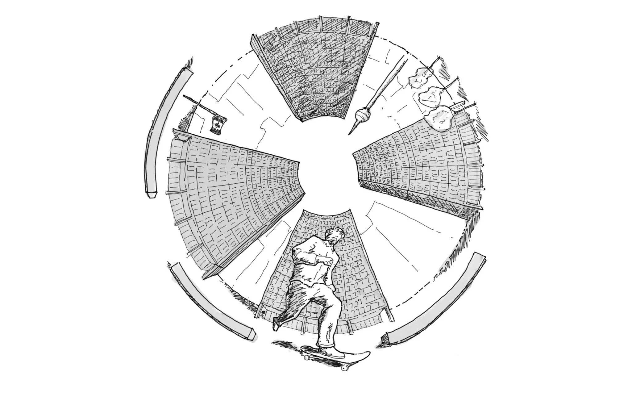 There’s a unique pleasure in getting a good, even if brief, skate session at one of these “granite cathedrals”, surrounded by people in suits in towers above, hunched over their workstations while daydreaming of a few leisurely hours in the sun. In the philosopher Jeremy Bentham’s Panopticon, the conceptual prison representing the ultimate architecture of control, there’s a central watchtower to observe prisoners inside their perimeter cells. Plazas like TD invert this, where the perimeter of office towers are the cells, and in the center lies an indeterminate open space where skateboarders find joy. Aside from the sweet rumble, crisp pop, and forgiving smoothness of its granite surfaces, these plazas offer an irreplicable feeling of freedom amidst the confines of everyday life.