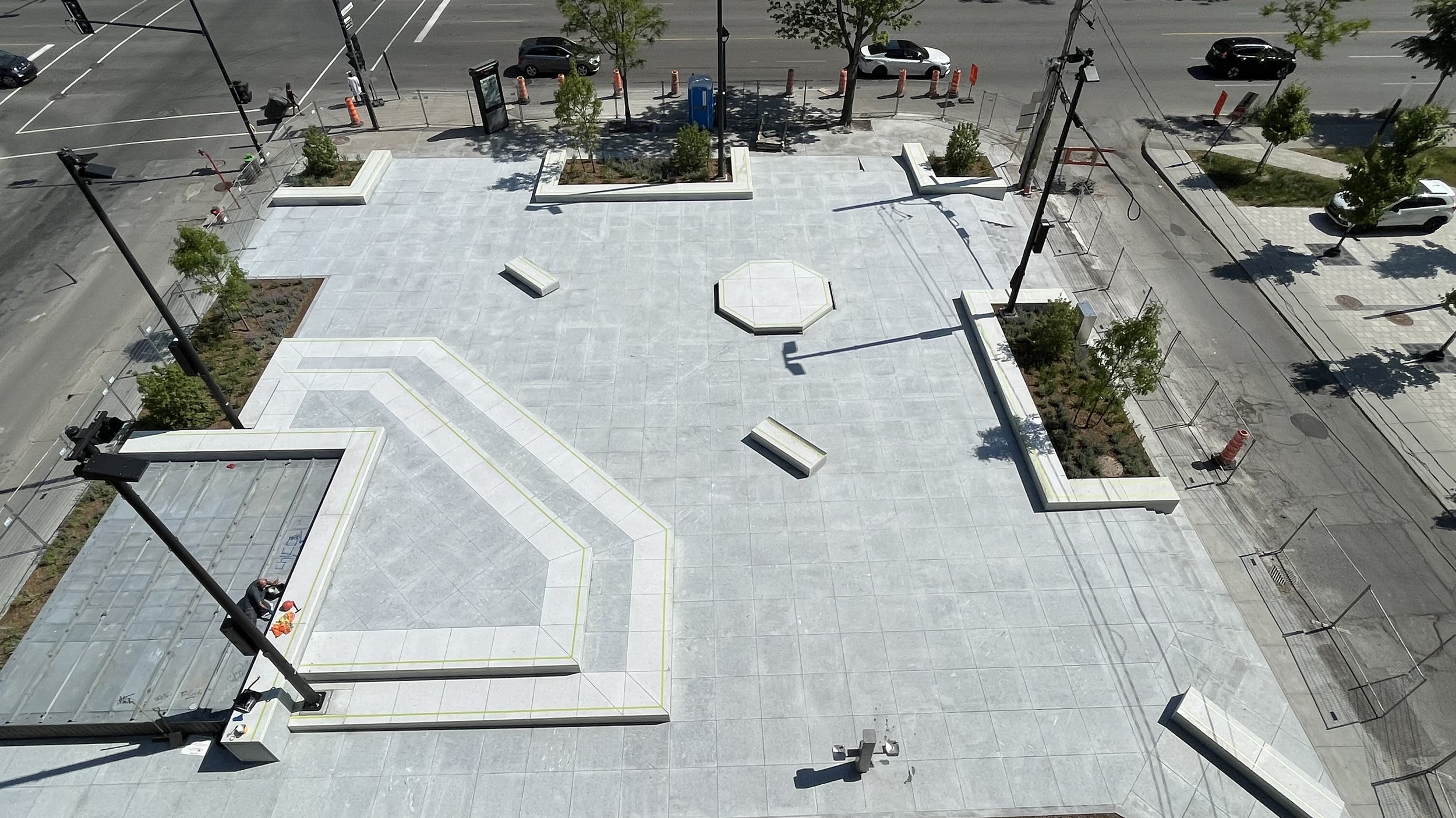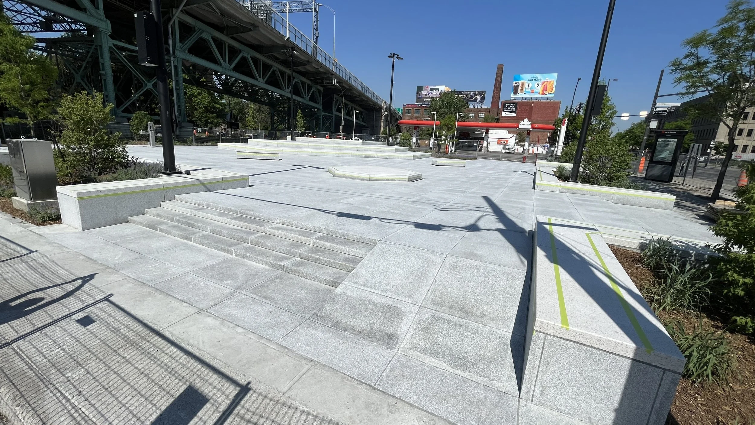 There's a skate plaza in Vancouver, which by some is considered the first in Canada. It's a skate plaza, it has a transition, rails, hubbas, and banks, whereas our plaza doesn't have anything but ledges and few steps. It's an urban design project that takes skateboarding into consideration. Our mayor Valérie Plante and the City of Montreal don’t consider it a skatepark or a skate plaza.