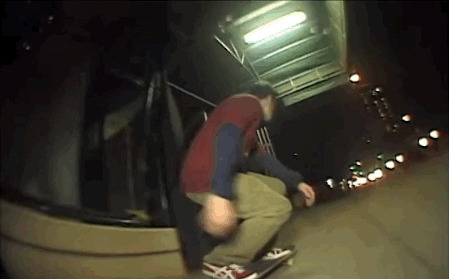 We're not sure what he's got on his feet, but this gap is huge and we'd be remiss if we didn't feature this legendary trick from the legendary Minneapolis video Midopoly.