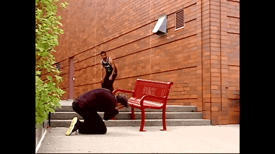 To double down on this concept, Paul and Joe dragged a different bench over to the three stair on a different day and skated it.