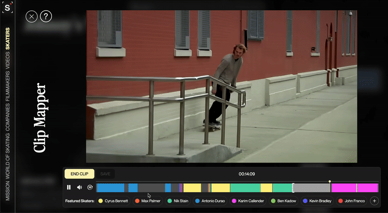 It's definitely a way to study people's careers in a way that wasn't possible before. We're starting this campaign soon to Clip Map someone's entire archive. We've already done it for Tom Knox, Jake Johnson, and Nick Michel. There are a number of other skaters that are in the works. We're going to start working with companies to encourage this by giving out free product to fans that want to help.