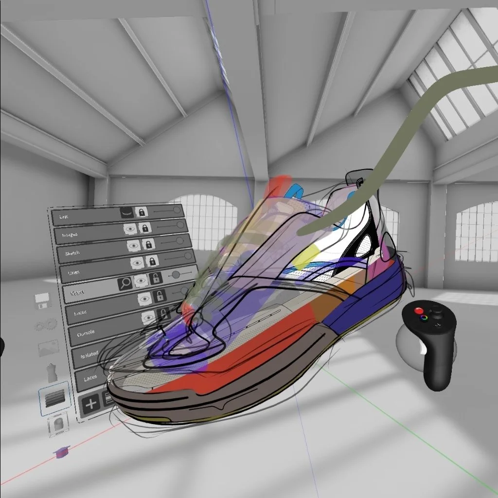 VR is quick and fast and that's huge. but the best part is that you can see your model in space, all the way around in 360 degrees. I feel like most of the time we're sketching shoes, we’ll do the lateral side or the outside of the shoe, then when we go into the tech pack process, we'll do a top view, the medial side, the inside, the heel view, and all that stuff. Some things get lost in translation because it's all 2D. You can get close, and the longer you do it, the closer you can get. When you sketch it all in 3D, it's so much easier to get all those details dialed early on.