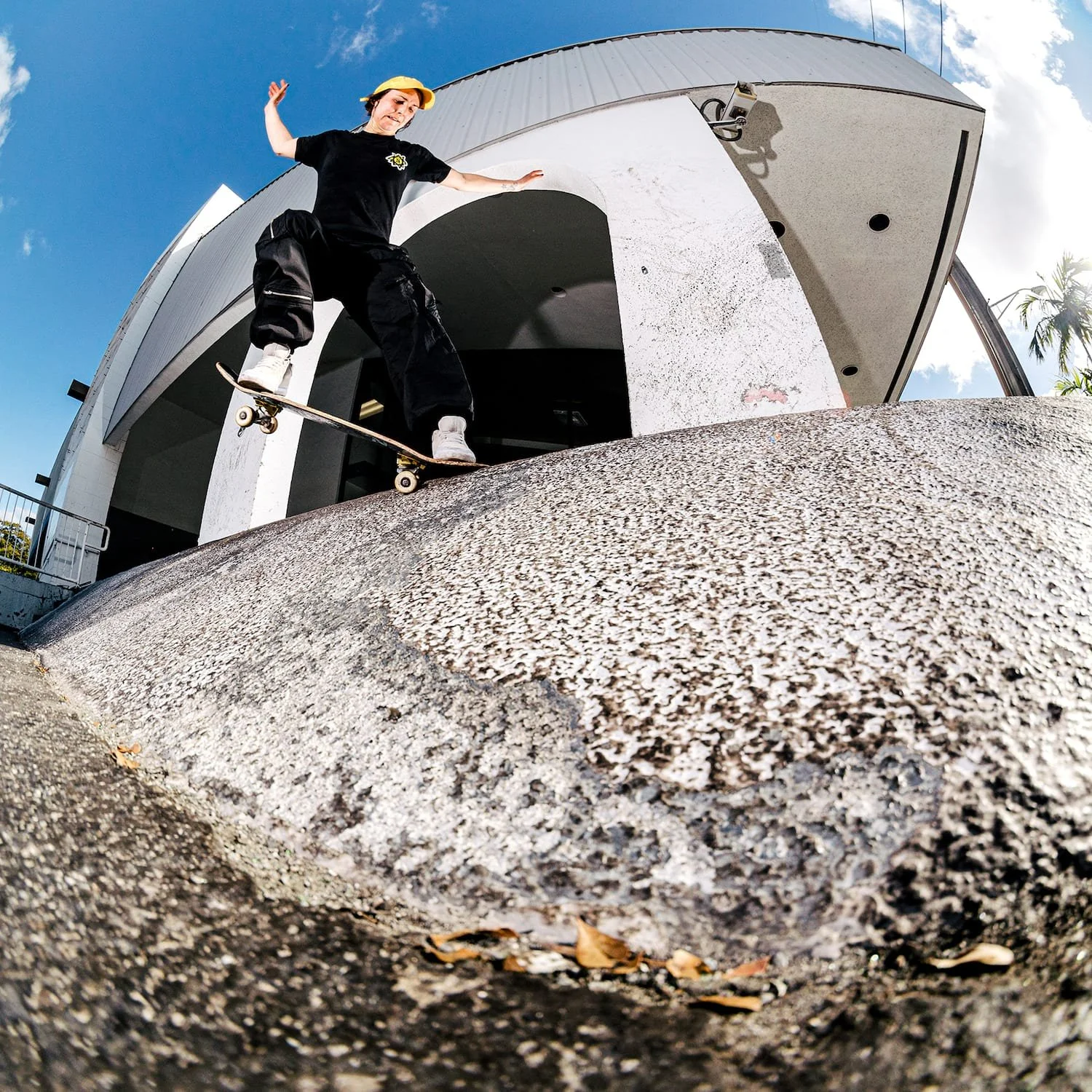 Jake: She's been in Philly for a minute. She's always been the downtown girl ripper, even though she doesn't want to be known as, like, a good girl skateboarder. She's like, dude, I just want to be like anybody else on the team. Don't say I'm the best girl, don't say I'm the girl that does that. She skates like everyone else. She skates cutty shit, she can skate downtown, Muni, she's like looking for [cellar] doors and shit. She has the Traffic sense, and I've always kind of thought she should ride for Traffic. So yeah, the timing was right, and I was like, yo, let's get you in here.